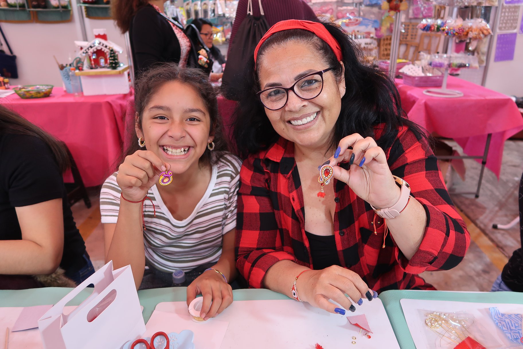 El equipo de MANUALIDADES DAYANA les comparte momentos de alegría durante la MEGA MANUALIDADES INTERNACIONAL, haciendo lo que más nos gusta, ARTE en SOUTACHE y ALAMBRISMO, estas técnicas se aplican en accesorios como aretes, colgantes, pulseras, anillos, vinchas, entre otras cosas, con diseños modernos, fáciles y muy originales.